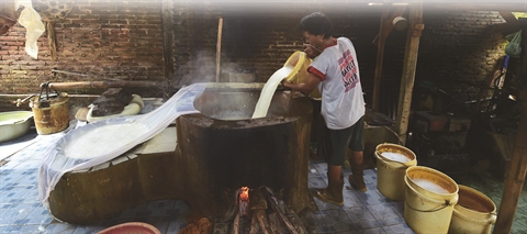 | Fabrication de tofu dans le village de Kalisari, en Indonésie. |