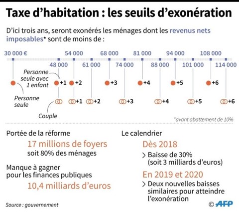 | Seuils d'exonération de la taxe d'habitation prévus par le gouvernement. |