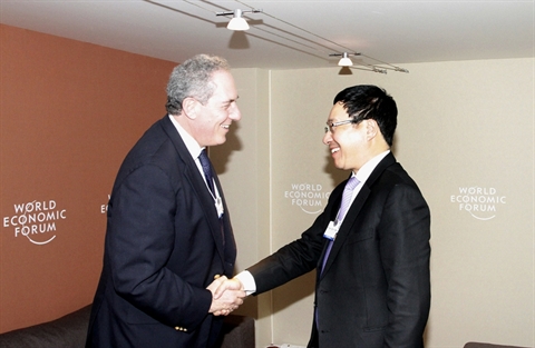 | Le vice-Premier ministre et ministre vietnamien des Affaires étrangères, Pham Binh Minh (droite), a rencontré, le 22 janvier à Davos (Suisse), le représentant au commerce des États-Unis, Michael Froman. |
