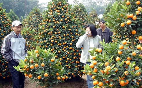 | Les kumquats font partie de la décoration pour le Têt traditionnel au Nord, au même titre que la fleur de pêcher. |