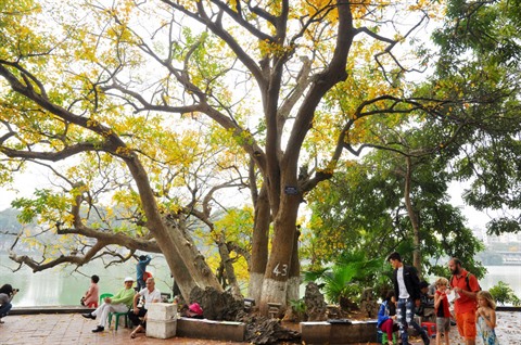 | Le barringtonnia géant à neuf troncs au bord du lac Hoàn Kiêm donne une allure impressionnante. |