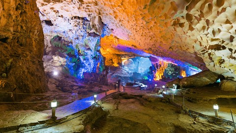 La grotte de Thiên Cung (Palais Céleste) est située sur l’île de Dâu Gô, à 25 m au-dessus du niveau de la mer.