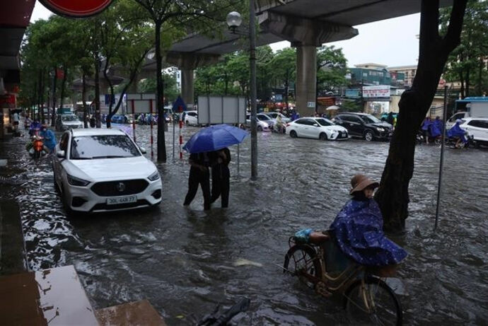 >> De fortes pluies nocturnes ont inondé de nombreuses rues de Hanoï
