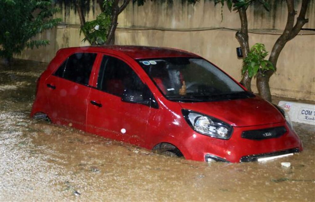 | Une voiture sous l'eau à Son La (Nord). |