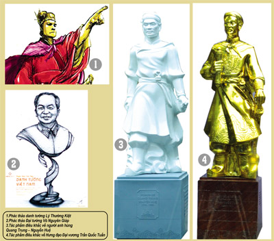 Les statues de Trân Quôc Tuân et de Quang Trung s’inspireront respectivement des œuvres des sculpteurs Vuong Duy Biên, et Vuong Hoc Bao. Le peintre Hà Dung Hiêp est responsable de l’établissement des esquisses de la statue de Ly Thuong Kiêt, et le peintre Dang Xuân Hùng, du général Vo Nguyên Giap.