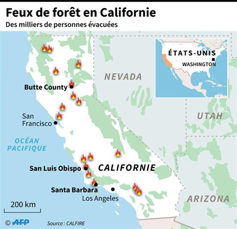| Feux de forêt en Californie. |