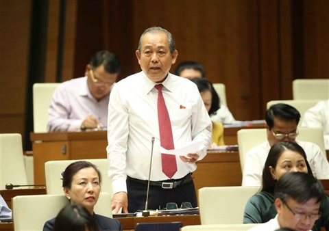 | Le vice-Premier ministre Truong Hoà Binh s'exprime devant l'Assemblée nationale, le 4 juin à Hanoï. |