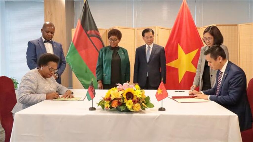 Le 23 septembre, dans le cadre de la Semaine de haut niveau de la 79e session de l'Assemblée générale des Nations unies (ONU) à New York, le vice-Premier ministre et ministre vietnamien des Affaires étrangères, Bùi Thanh Son, et la ministre des Affaires étrangères du Malawi, Nancy Tempo, ont assisté à la cérémonie de signature du communiqué conjoint établissant les relations diplomatiques.
