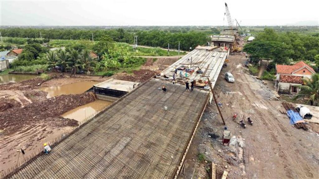 | Sur le chantier de construction du pont enjambant la rivière Càn, province septentrionale de Ninh Binh. |