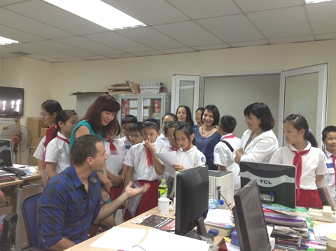 | Des élèves de l'école Doàn Thi Diêm au siège social à Hanoi du Courrier du Vietnam, le 30 juillet. |