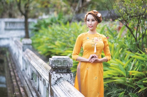 | Stella Dào vêtue de la tenue traditionnelle des Vietnamiennes. |