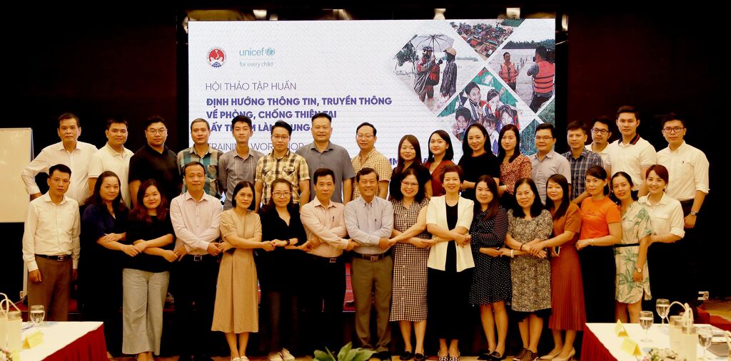| Des participants à l'atelier de formation sur les orientations en matière d’information et de communication pour la réduction des risques de catastrophes centrée sur l’enfant. |