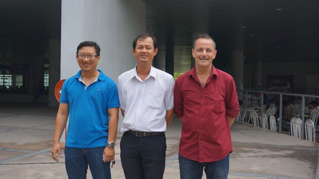 | Alexis Drogoul (droite), Huynh Quang Nghi (centre) de l’Université de Cân Tho, et Arthur Brugière de l’IRD. |