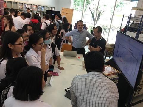 Du haut du bâtiment A1 de cette Université de l'arrondissement de Dông Da, il accueille de nombreux chercheurs et experts français pour des missions de courte durée (2 à 11 mois) à longue durée (2 à 4 ans) ainsi que des homologues vietnamiens pour travailler sur différents sujets. De quoi ouvrir la voie à des opportunités de collaboration pluridisciplinaire et de grandes satisfactions pour ce chercheur infatigable.