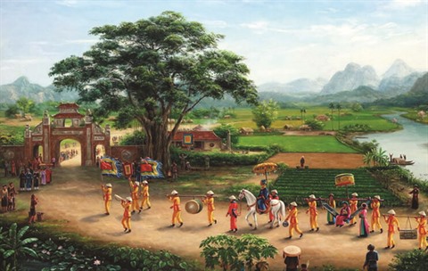 | Peinture du cortège accompagnant autrefois le retour glorieux du lauréat du concours de doctorat du palais royal dans son village natal. |