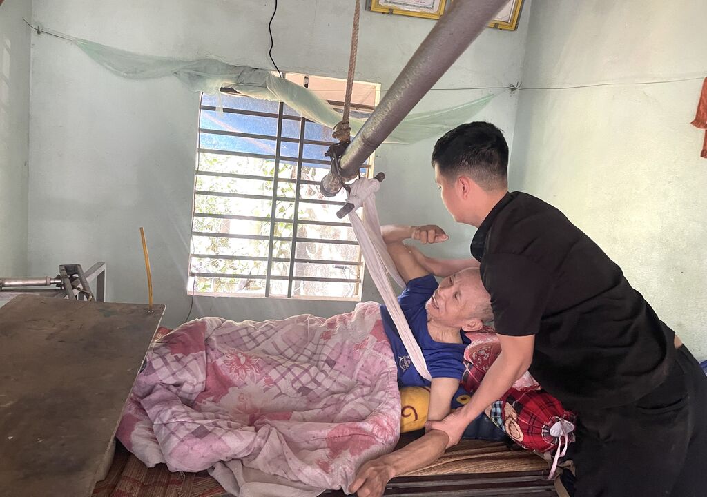 Lê Van Hoa, âgé de 30 ans, est originaire de la commune de Triêu Trung, district de Triêu Phong, province de Quang Tri. Son père, Lê Van Hiêu, a eu un accident et est paralysé du cou depuis son enfance.