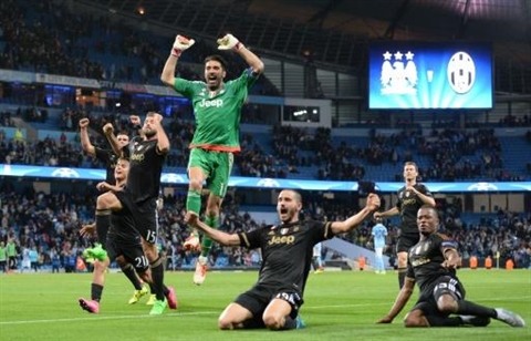 | Les joueurs de la Juventus explosent de joie après leur victoire sur Manchester City, le 15 septembre à l’Etihad Stadium. |