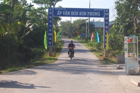 | Un chemin bétonné de la commune de Son Dinh, la quatrième de la province de Bên Tre à remplir les 19 critères de la Nouvelle ruralité en 2014. |