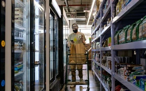 | Dans les locaux d'une entreprise de livraison de produits d'épicerie à domicile, le 31 mars 2021 dans le quartier de Brooklyn à New York. |