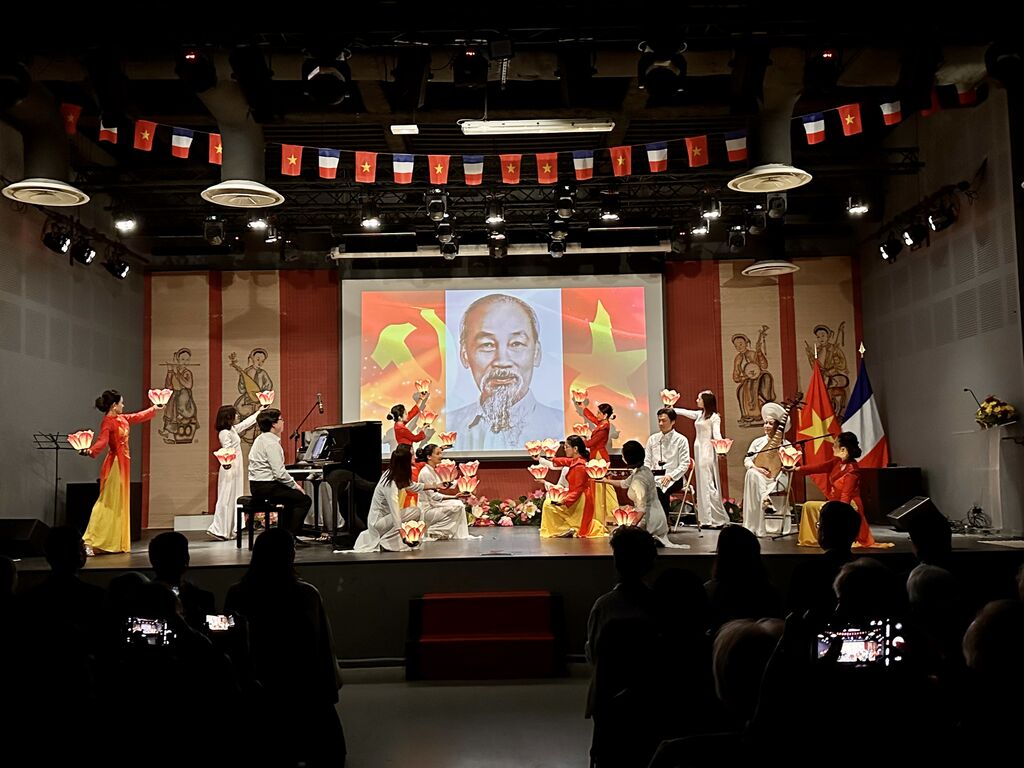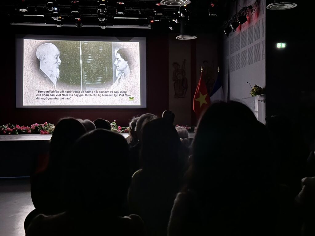 Au cours de la cérémonie, un film documentaire sur Hô Chi Minh a été projeté, suivi d’un programme artistique intitulé "Souvenir de l’Oncle Hô", interprété par la chorale "Quê Huong", des étudiants et des artistes du Centre Culturel Vietnamien. Le point d’orgue de ce programme fut la présentation de deux œuvres musicales majeures : Canh khuya (Nuit paisible), poème de Hô Chi Minh mis en musique par Hoàng Vân, et Nguoi chiên si ây (Ce combattant-là), une œuvre de ce même compositeur récemment inscrite en avril 2025 par l’UNESCO au Registre de la Mémoire du monde. Ces performances ont suscité une profonde émotion, ravivant l’image de l’Oncle Hô à travers la poésie et la musique.