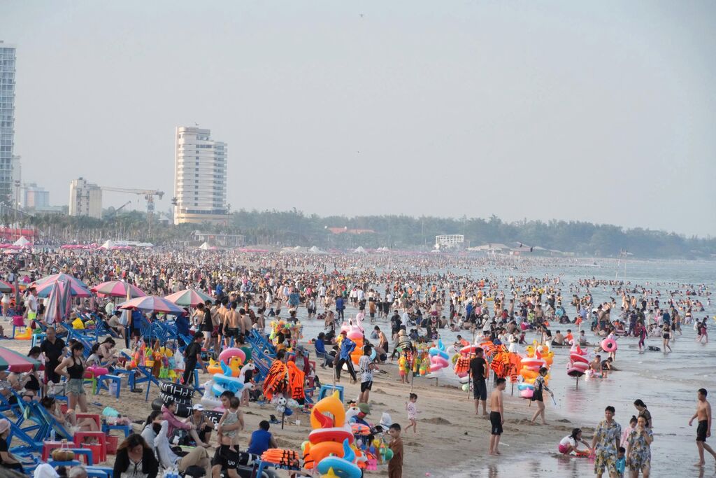 | Un grand nombre d’habitants locaux et de touristes à la plage de Vung Tàu. |