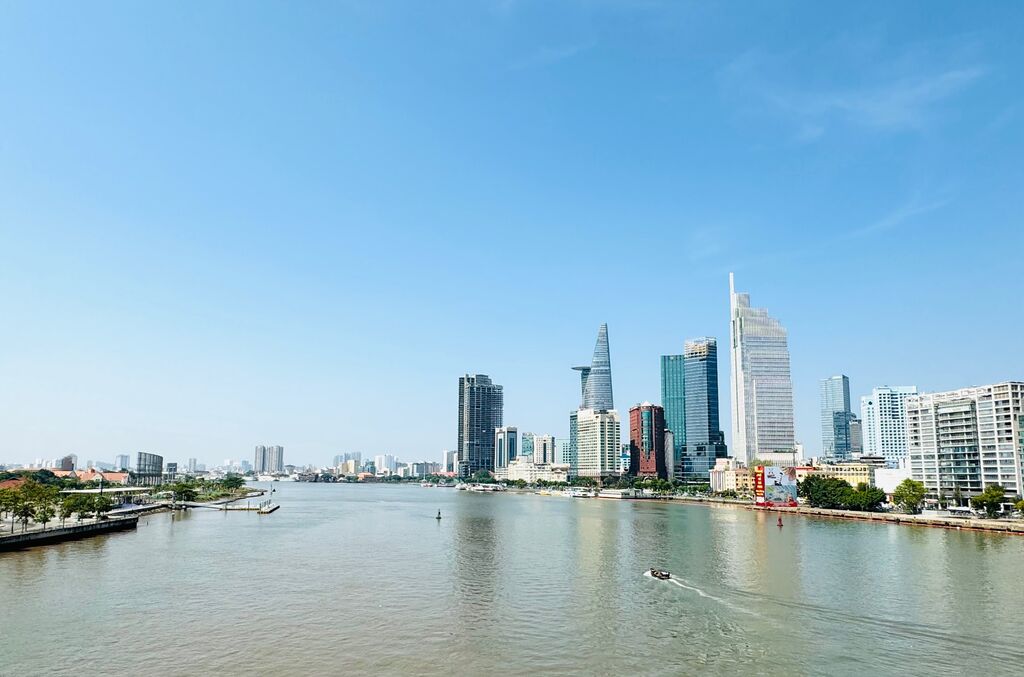 | Vue de Hô Chi Minh-Ville depuis le fleuve Saïgon. |