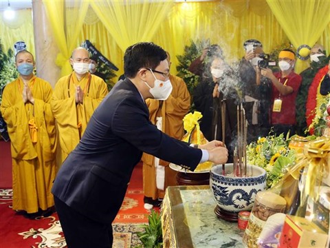 | Le vice-Premier ministre Pham Binh Minh est allé rendre un dernier hommage au vénérable Thich Phô Tuê, le 22 octobre. |