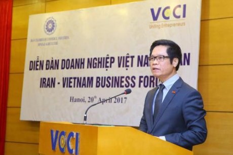 | Le président de la VCCI, Vu Tiên Lôc, prend la parole au forum d’entreprises Vietnam - Iran tenu le 20 avril à Hanoï. |
