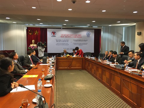 | Signature du mémorandum de coopération entre l'Institut d'études sur l'Afrique et le Moyen-Orient et le Centre d'études et de recherches en sciences sociales, le 28 mars à Hanoï. |