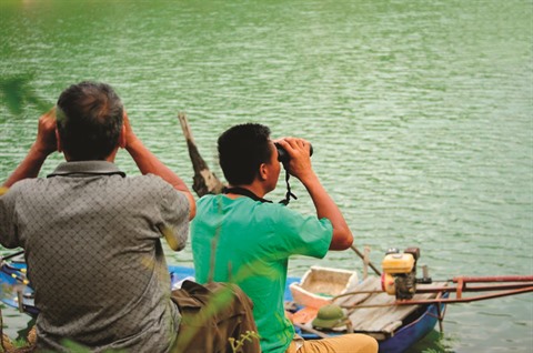 | Les membres de l’ATP travaillent sans relâche à Dông Mô pour enregistrer les observations et le comportement des deux tortues à carapace molle de Swinhoe. |