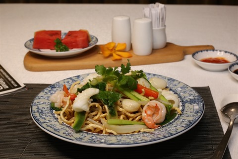 | Le "mi xào hai san" (vermicelles sautés aux fruits de mer) |