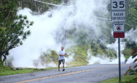 | De la vapeur s'échappe d'une fissure près de Leilani Estates, le 4 mai |