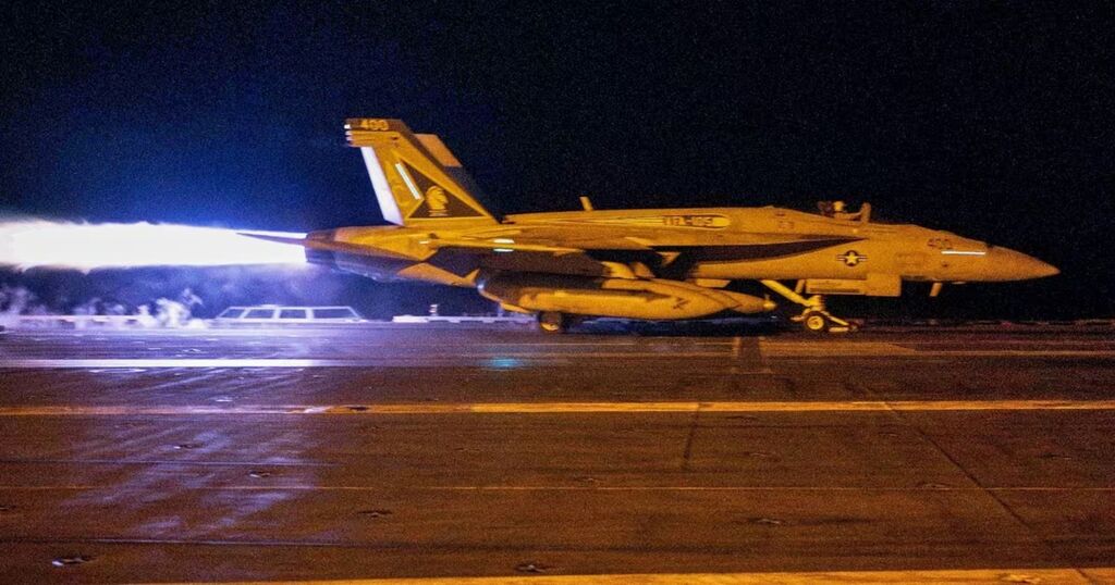 | Un avion décolle du porte-avions américain USS Dwight D. Eisenhower en mer Rouge, le 12 janvier 2024. |