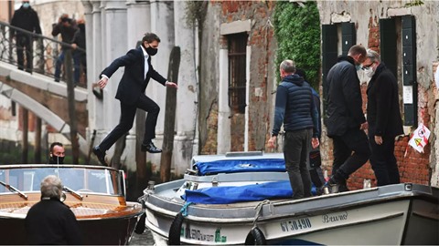 | Tom Cruise à Venise pendant le tournage de "Mission Impossible : Lybra", le 20 octobre 2020. |