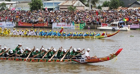| La course de ghe ngo (pirogue), une activité indispensable de la fête Ok Om Bok à Trà Vinh. Photo : Ba Thi/CVN |