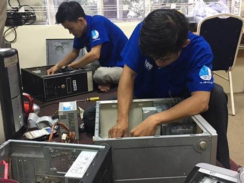 Ces derniers jours, dans une chambre au 3e étage du Centre des sciences et des technologies pour la jeunesse (CSTJ), lequel relève de l’Union des jeunes communistes de Hô Chi Minh-Ville (UJC), les étudiants se pressent de finir de remonter de vieux ordinateurs pour une prochaine remise aux élèves et étudiants de la province de Bac Ninh (Nord). Ces ordinateurs sont assemblés à partir d’accessoires de vieilles machines.