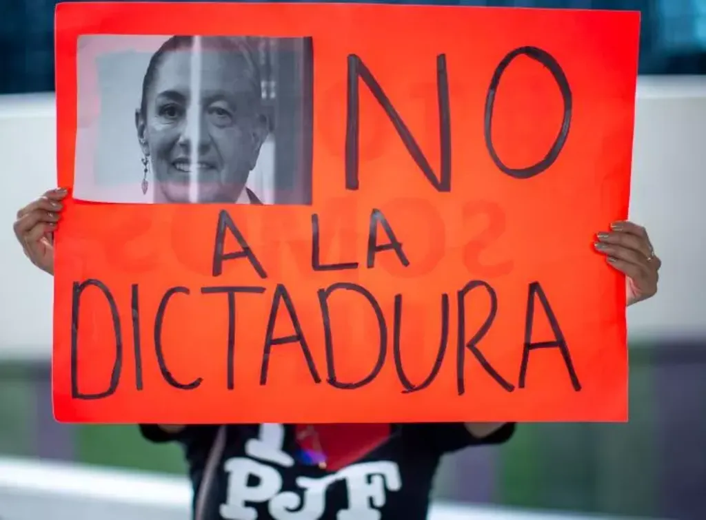 | Une femme tient une pancarte "Non à la dictature" pendant une manifestation contre le pouvoir en place à Monterrey dans le nord du Mexique, le 4 octobre 2024. |