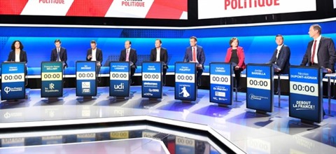| Les douze têtes de listes pour les Européennes participent à un débat télévisé sur France 2, le 4 avril à Saint-Cloud, près de Paris. |