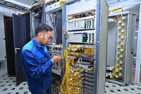 | Dans un centre du Group des postes et télécommunications du Vietnam (VNPT) à la province de Hà Giang (Nord). |