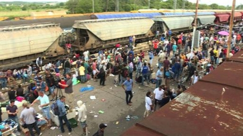 | Des milliers de migrants bloqués à la gare du poste frontière de Gevgelija, en Macédoine. |
