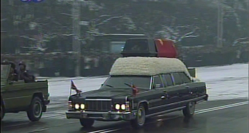 La télévision centrale de la RPDC a diffusé des images montrant des soldats en rang dans la neige devant le mausolée, tandis qu'une limousine arborant un immense portrait souriant du dirigeant décédé s'avançait lentement, suivie par le cortège funéraire.
