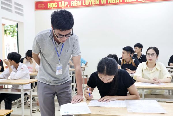 Trân Nam Huân, lui, est bénévole au lycée Viêt Duc. "Nous sommes présents depuis 6h du matin pour apporter des aides aux élèves. Nous avons préparé des petits cadeaux, comme un petit déjeuner ou une bouteille d’eau pour les encourager", nous a-t-il dit.