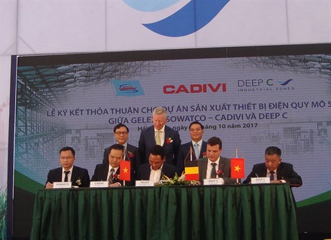 Pour clôturer dignement la cérémonie, la compagnie par actions des zones industrielles de Dinh Vu et celle des équipements électroniques du Vietnam (GELEX) ont signé un accord de principe sur la location d’un terrain de 50 ha dans la zone industrielle Deep C III.