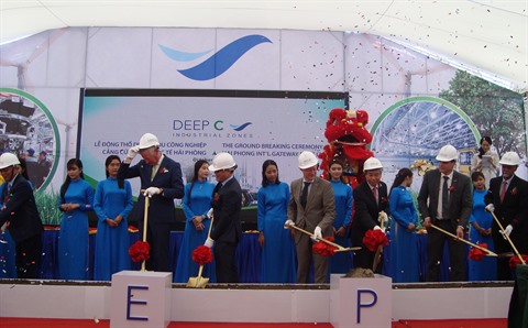 | La cérémonie de mise en chantier de la zone industrielle Deep C III, le 5 octobre dans la ville portuaire de Hai Phong (Nord). |
