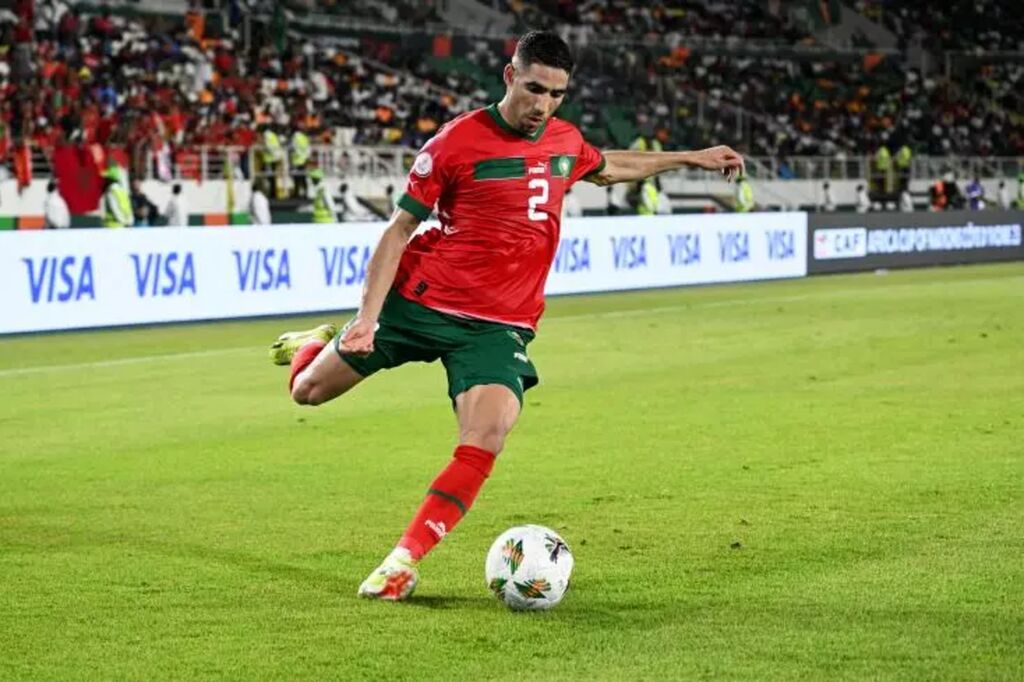 | Achraf Hakimi, l'un des piliers de l'équipe du Maroc, au cours du matcj contre la Tanzanie au 1er tour de la Coupe d'Afrique des nations, le 17 janvier à San Pedro. |