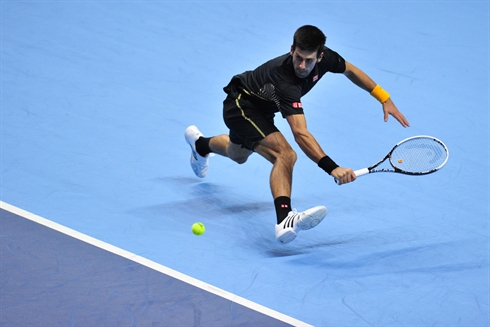 | Le Serbe Novak Djokovic en compétition lors de la première journée du Masters le 5 november à Londres. |