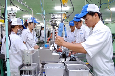 | Dans une entreprise japonaise de production électronique basée dans la zone industrielle de Thang Long II, province de Hung Yên (Nord). |