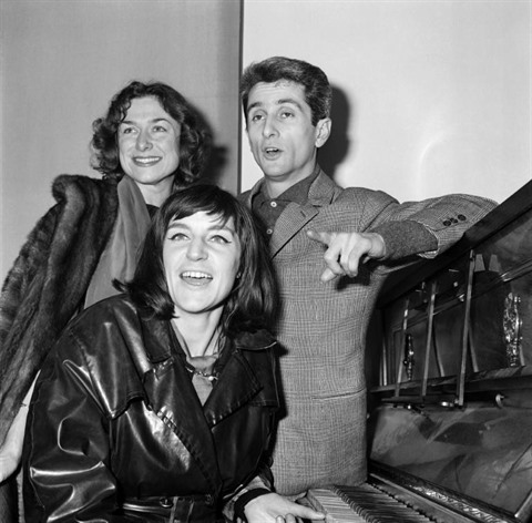 | La chanteuse française Anne Sylvestre (centre) aux côtés des acteurs et chanteurs français Catherine Sauvage et Marcel Amontm le 5 février 1962 à Paris. |