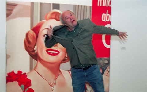 | James Rosenquist devant un de ses taleaux intitulé "Joan Crawford", réalisé en 1964 au musée Georges-Pompidou à Paris le 14 mars 2001. |