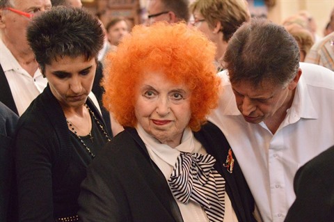 | Yvette Horner (centre), le 17 juillet 2013, aux funérailles de l'accordéoniste André Verchuren, à Chantilly. |